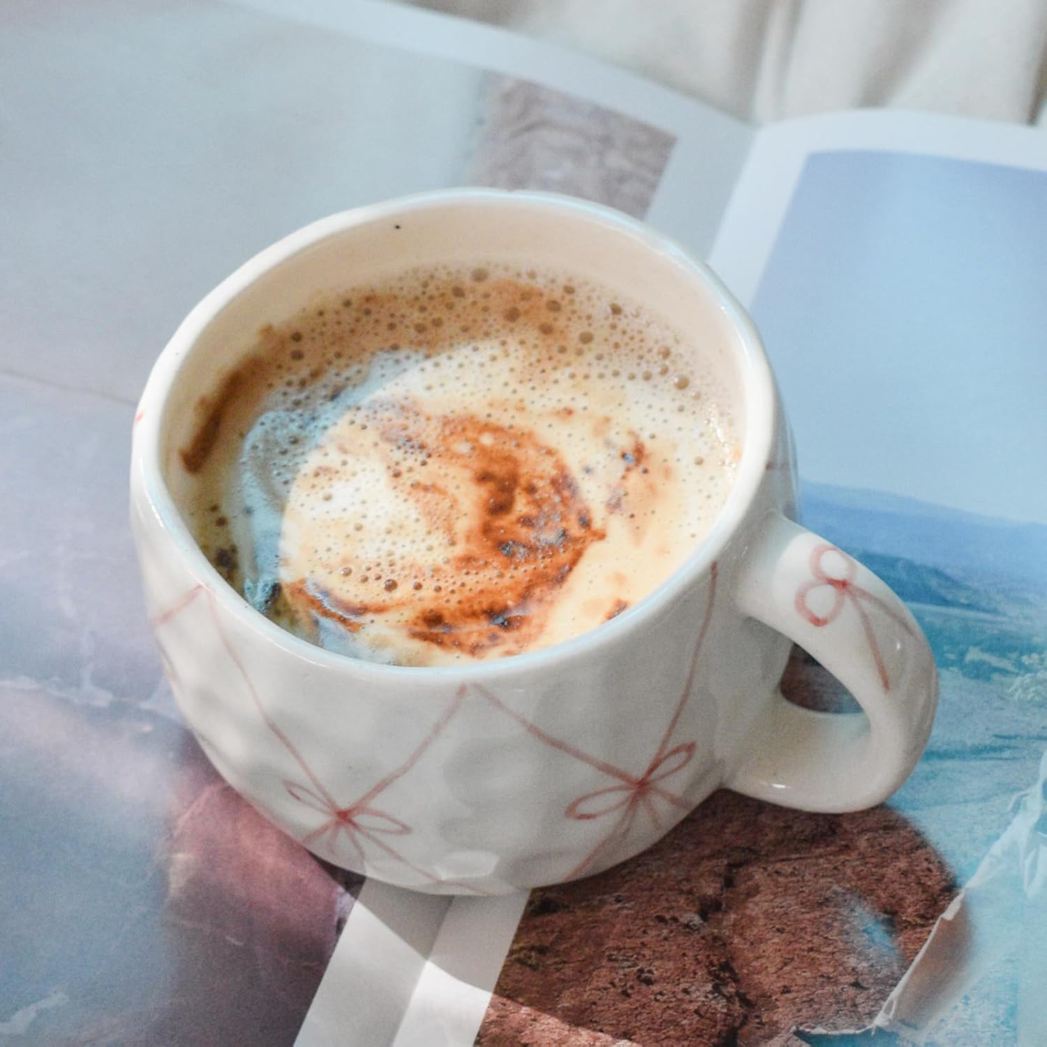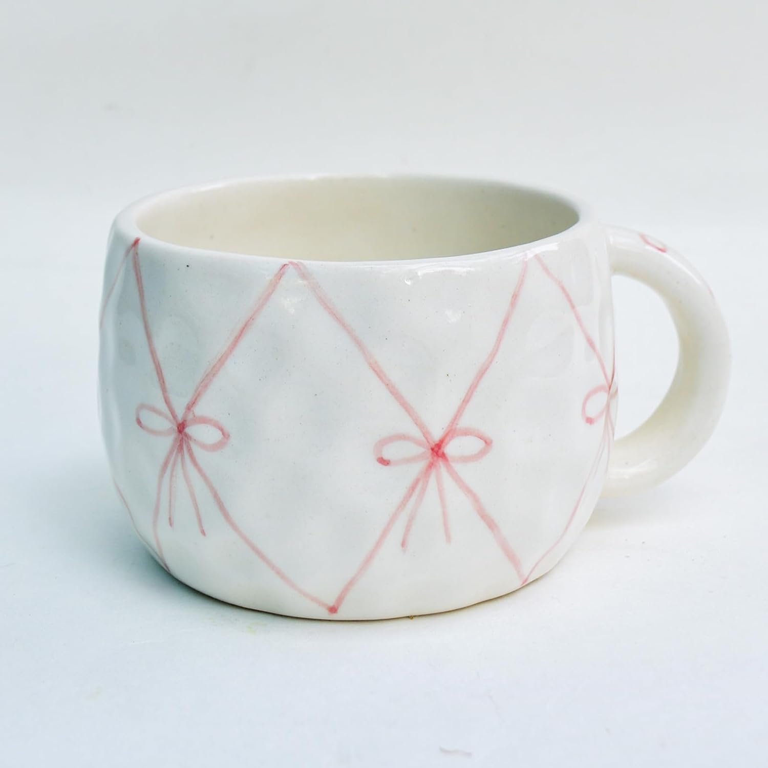 HEIGHT : 2.7 inches RIM DIAMETER : 3 inches COASTER DIAMETER : 4 inches CAPACITY : 200 ML Note: Due to the handcrafted nature of the product, there might be slight color/design variation. "Perfect for enjoying your favorite tea, coffee, or even a sweet hot chocolate, this cute and unique mug set exudes a Bridgerton-esque charm. Ideal as a mug for gifting or adding a statement piece to your decorative tableware, itÕs all about sophistication with a touch of playful style. Add this handcrafted ceramic tea cup and coaster set to your collection and sip in style!                                                                       Dishwasher safe Microwave safe Leaving stains longer may cause discolouration. Avoid using abrasive materials to wash. Clean gently and wipe with a soft dry cloth. Avoid sudden temperature changes. Avoid long-term direct exposure to sunlight. |
