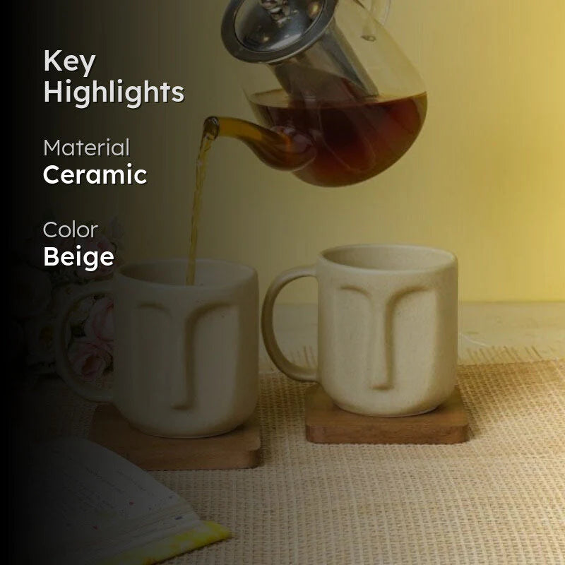 Morwee Straight Face Mug (Beige) - Set Of Two